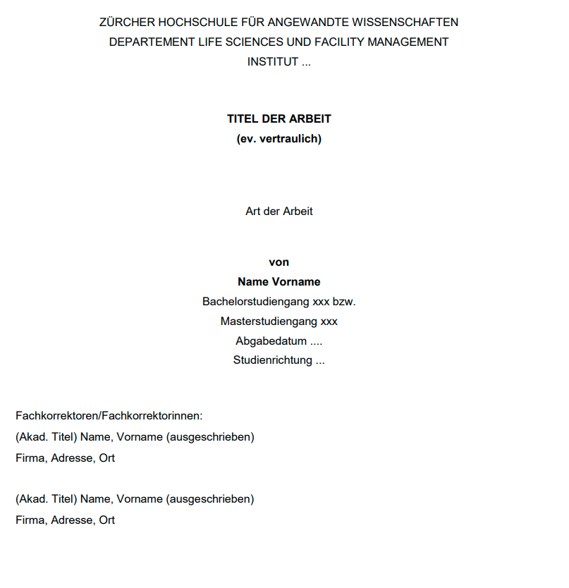 Die Titelseite ist gemäss Muster auszuführen (siehe Anhang 2).